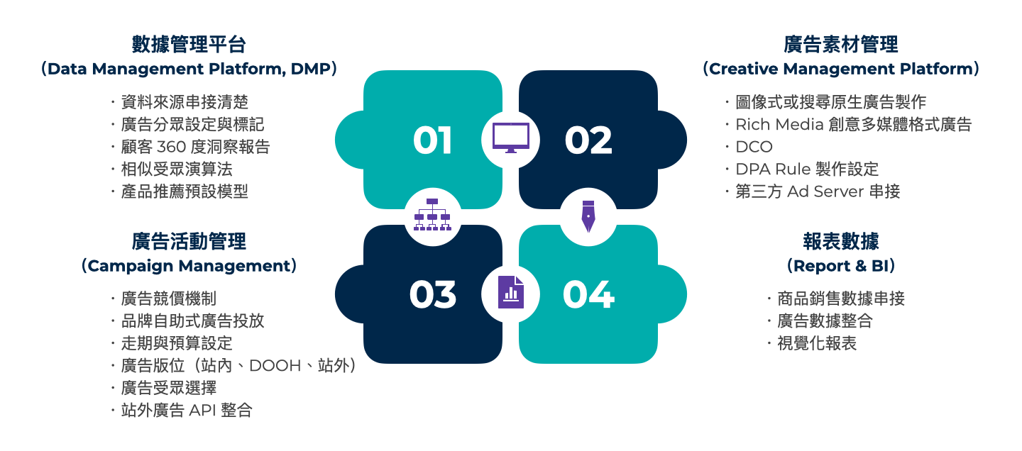 最後,你必須客觀地評估公司當前擁有的資產。例如:公司是否已擁有足夠的會員資料與交易數據,供潛在的合作夥伴實現多個廣告活動?如果沒有,你可能需要透過忠誠度計畫,搜集更多的第一方數據。此外,公司是否有足夠的技術力,實現諸如數據管理、廣告素材與活動管理、報表數據產出⋯⋯等廣告平台功能?一般而言,零售商通常並不具備建構廣告平台所需的人力;因此,便需要尋找足夠成熟的廣告科技公司結盟,借助外部專業,建構有力的廣告平台。