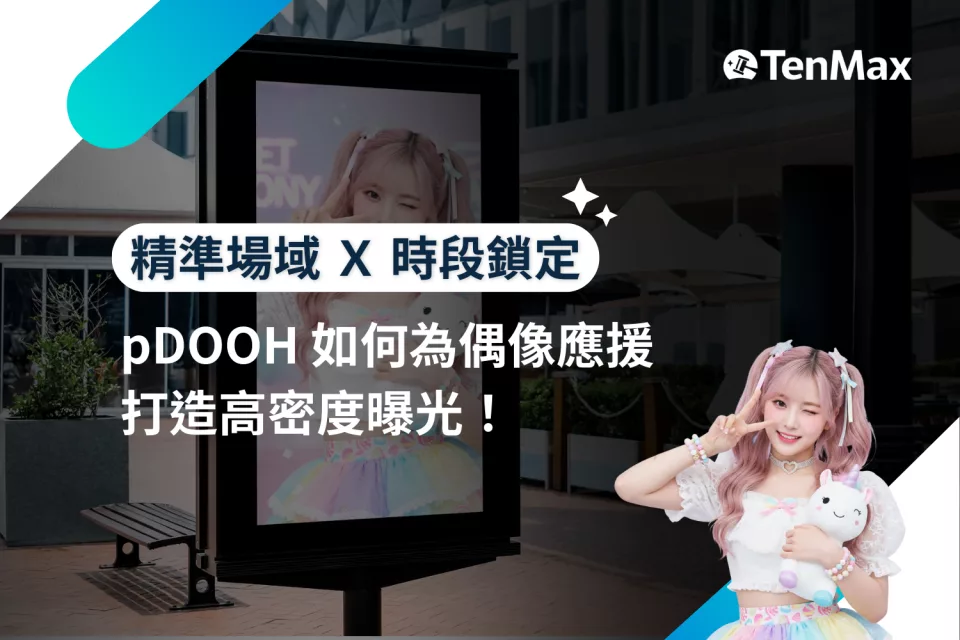 在小眾文化逐漸走出同溫層的這個時代,粉絲期望透過更專業、更有效率的方式擴大活動現場氛圍。TenMax 透過 pDOOH 精準鎖定活動場館周邊,以「場域高關聯 × 時段高效益」的策略,把粉絲的心意轉化成場景化的視覺應援,讓偶像在踏上舞台前,就先在街頭被更多人看見。