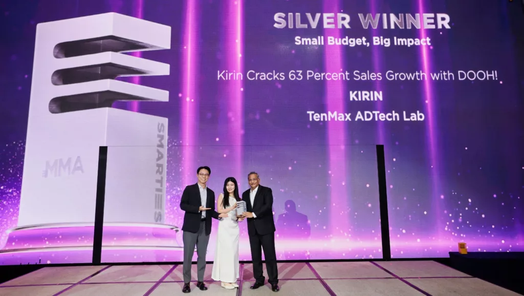 TenMax 在 2025 MMA Smarties Awards APAC 中,憑藉與台灣麒麟啤酒 (KIRIN) 合作的 pDOOH 案例,榮獲「Small Budget, Big Impact」銀獎殊榮。該得獎案例以 TenMax 程序化數位家外廣告 (pDOOH) 解決方案為核心,透過結合人流偵測、Beacon 精準推播與動態優化策略,證明了即使在有限預算下,仍能以科技與創意創造具體成效。這不僅肯定了 TenMax 「數據 × 科技 × 創意」 的整合實力,更展現了程序化 DOOH 在零售媒體應用上的巨大潛力!